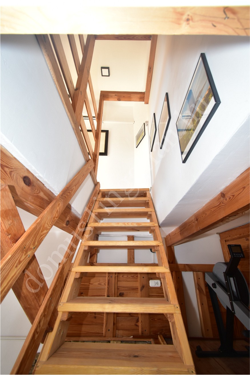 A lakás felső szintjén a fürdőszobán kívül még két hálószoba, egy közlekedő-pihenő és egy saját használatú tetőtér is rendelkezésre áll.